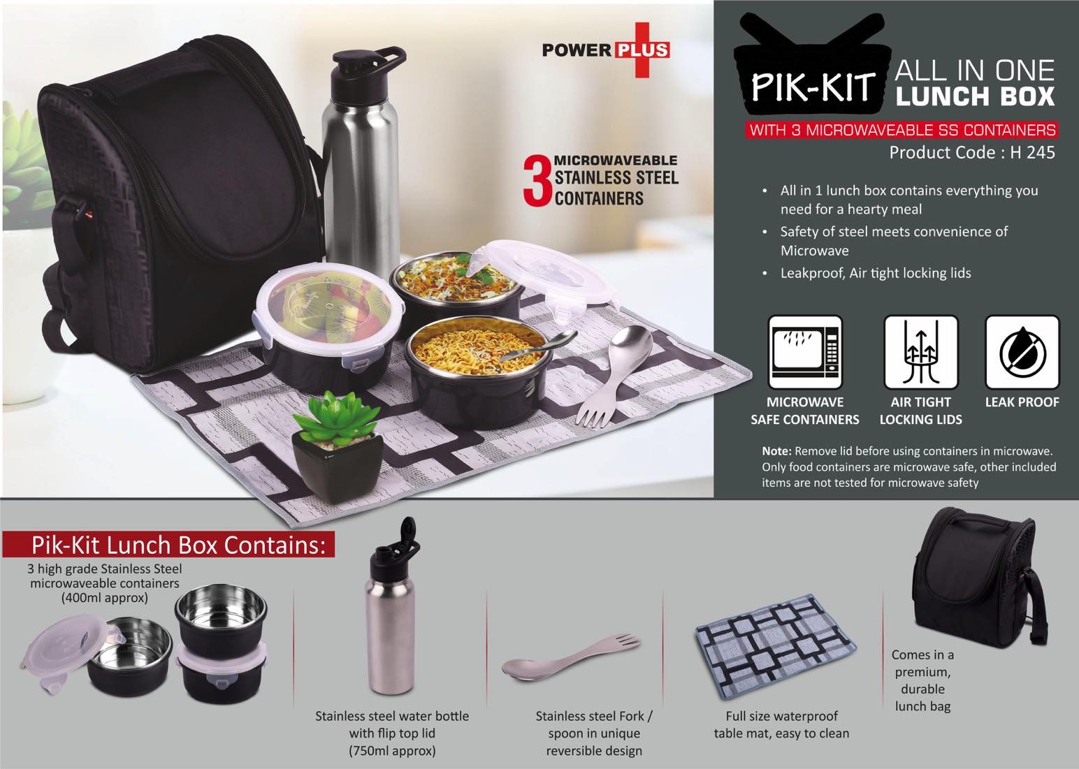 – 3 high grade Stainless Steel microwaveable containers (400ml approx)